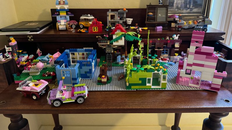 As weeks and months of Lego building persist, I can’t help but think of the craftsperson who made the desk. I believe they’d be pleased with the innovation happening on their original creation. I know my mom, also an artist, would be delighted, too.