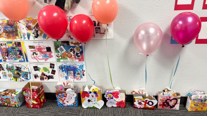Love is in the air. Children dressed in heart-themed clothing are moving about the school with immense excitement. Today is abuzz with enthusiasm for celebrating Valentine’s Day a few days early, due to parent/teacher conferences on Thursday and Friday. The hallway is full of decorations and bags to hold valentines delivered by students to each other. The love and kindness we cultivate all year round are visible on this day.
